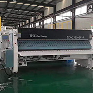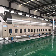 隧道式洗衣機配套設備之一,布草經(jīng)隧道式洗衣機預洗、主洗、漂洗出倉后自動進入壓榨機進行壓榨脫水。與傳統(tǒng)的壓榨設備相比,百強壓榨機采用 了先進的經(jīng)過特殊設計的棱式壓榨頭 ,可以在壓榨過程中有效逐步去除布草中殘存 的空氣,防止在壓榨過程中因壓力過大出現(xiàn)布草爆損,大限度地保護布草的完好。 壓榨好的布草經(jīng)穿梭運輸機進入烘干機進行打散烘干。